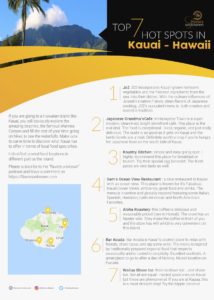 Planing a trip to Kauai? aLooking for the best places to discover delicious local food? Just bring this one pager with you!